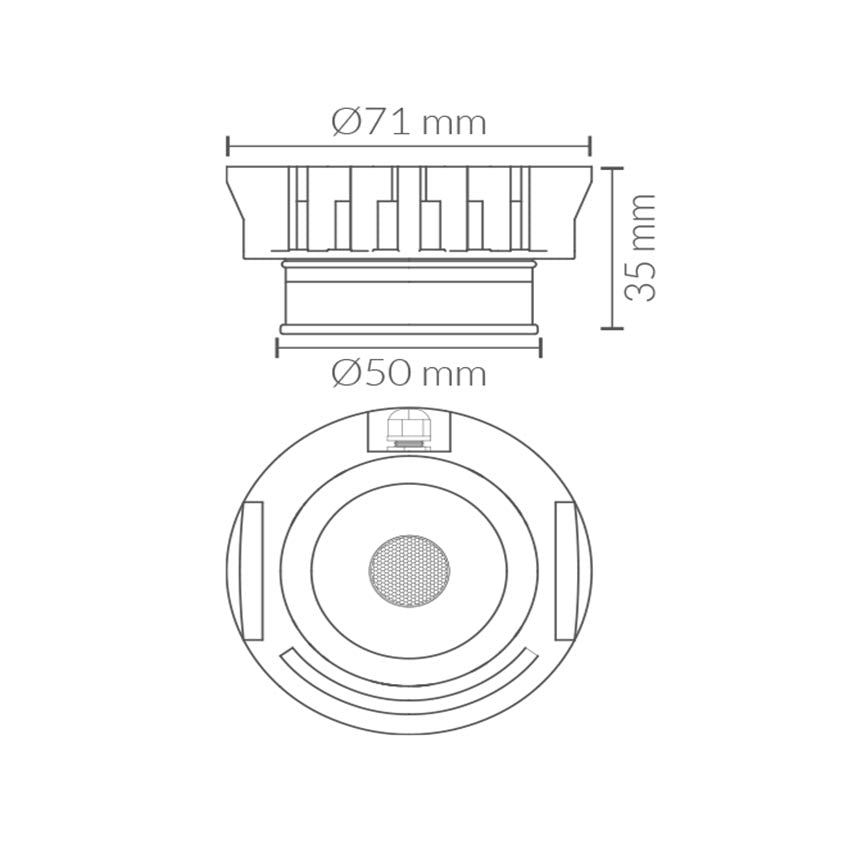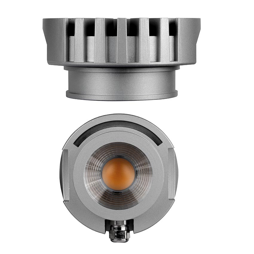 Módulo LED IP65 de 12W, equipado con chip LED COB Cree y driver externo al módulo Lifud CRI90. Ofrece un flujo lumínico de 1380 - 1416lm, con apertura óptica de 60º simétrica y temperatura de color de 3000K o en 4000K. Fabricado en aluminio con acabado gris y óptica de termoplástico transparente, garantiza protección frente a polvo y agua (IP65). Compatible con distintos aros de empotrar para una instalación versátil. Certificado CE & ROHS