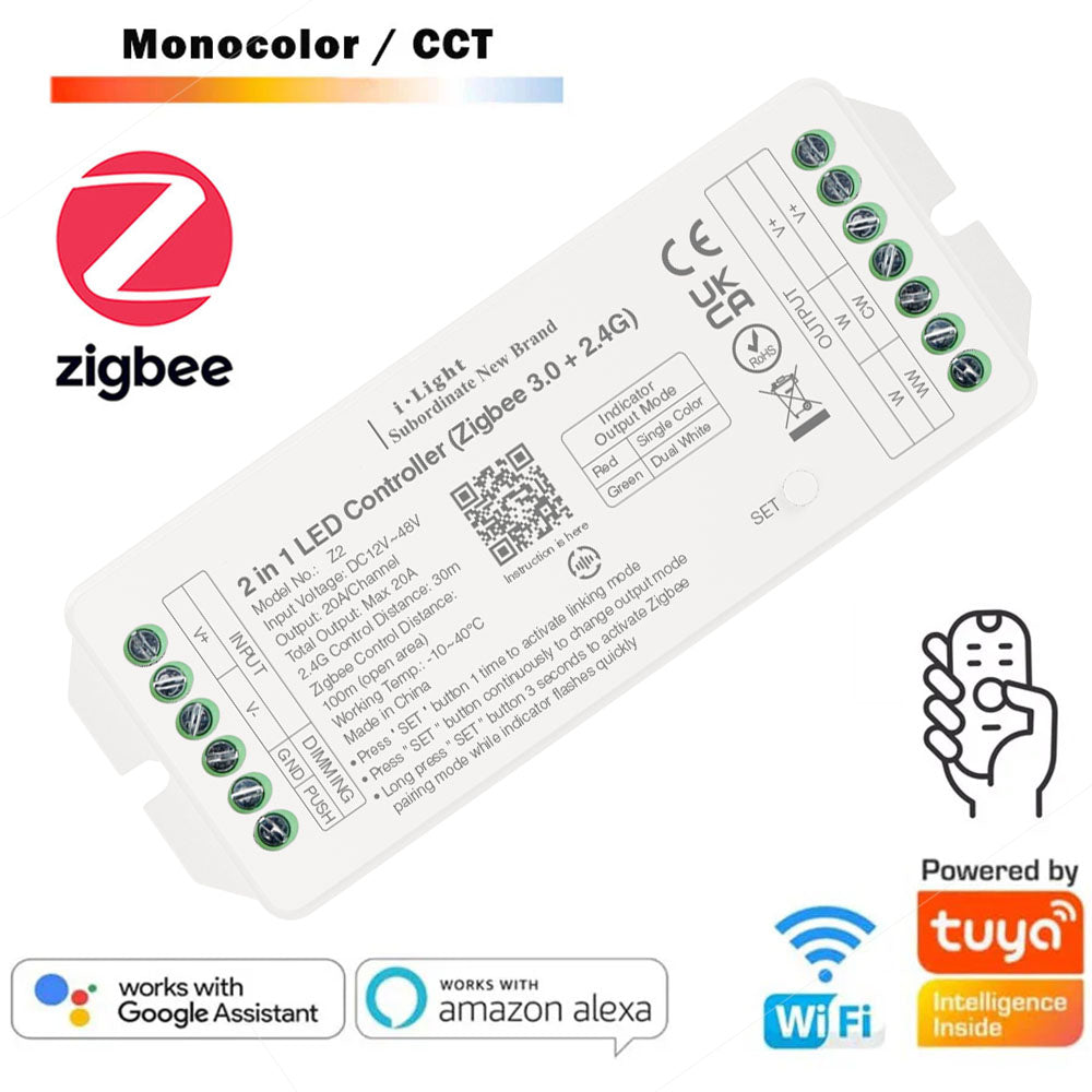 Controlador Monocolor CCT WIFI Tiras LED 12V / 24V 20A Zigbee